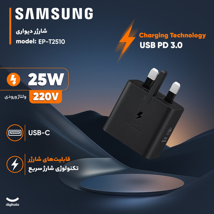 شارژر دیواری 25 وات سامسونگ مدل T2510