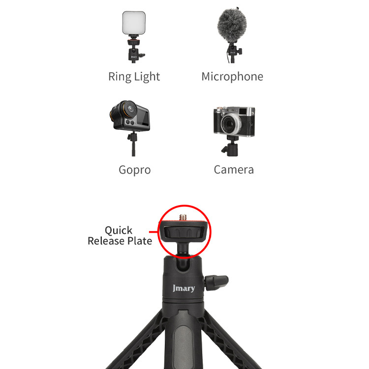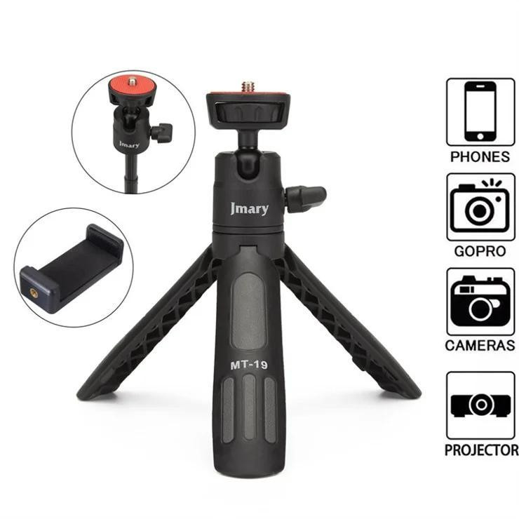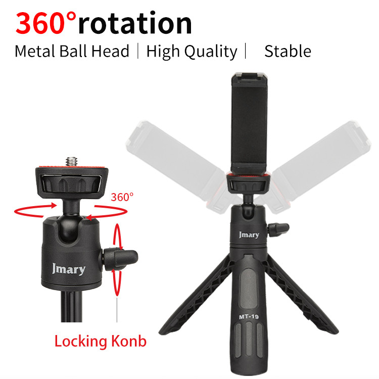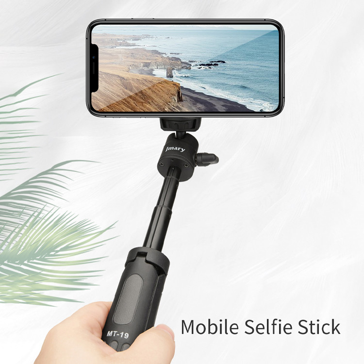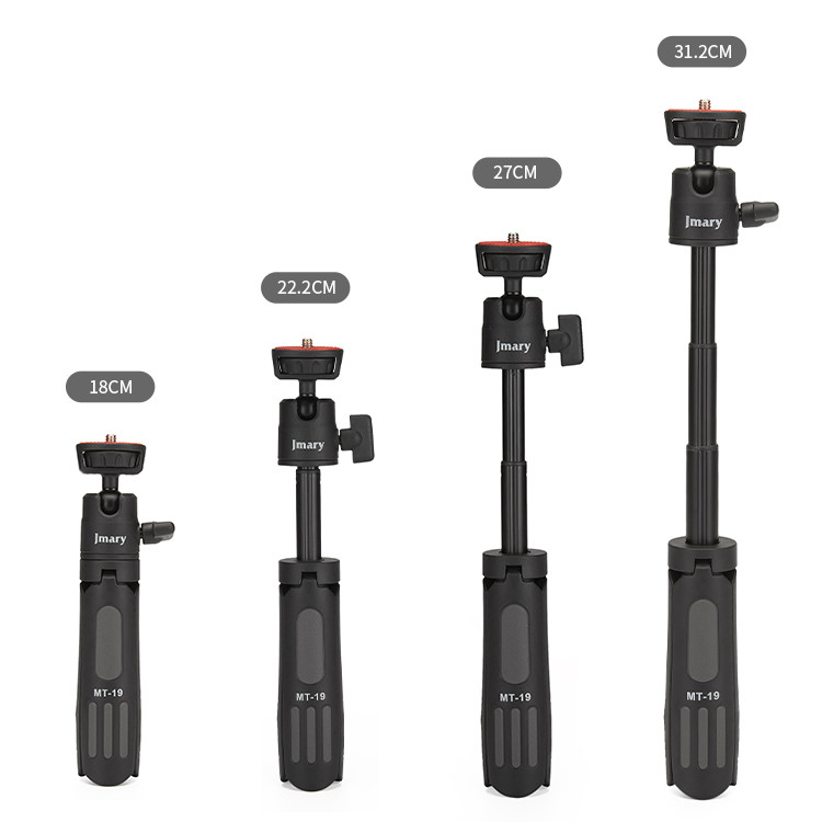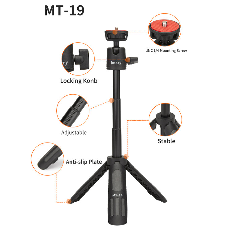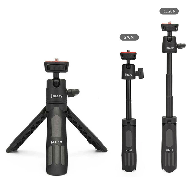 سه پایه سبک و بادوام جی ماری MT19 مناسب برای دوربینهای دیجیتال ، موبایل و دوربینهای ورزشی دارای سر سه پایه صاف 360 و دستگیره راحت هست که به شما امکان میدهد از انواع اجسام متحرک و پانوراما بدون پایین آمدن کیفیت عکس بگیرید. ارتفاع این سهپایه بین 18 تا 31.2 سانتیمتر قابل تنظیم است . سطح حباب، که در تمام سه پایهها تعبیه شده است، به نمایان شدن خط افق و جذابیت بیشتر کادر کمک میکند. برند Jmary مونوپاد و مینی سه پایه را نیز برای علاقه مندان به عکاسی با موبایل تولید میکند. سه پایههای جمع و جور و سبک وزن با ساختار قوی و قابل اعتماد خود متمایز میشوند. برخی از مدلها از کنترل از راه دور پشتیبانی میکنند، که لوازم جانبی Jmary را به همراهی ضروری در سفر تبدیل میکند.