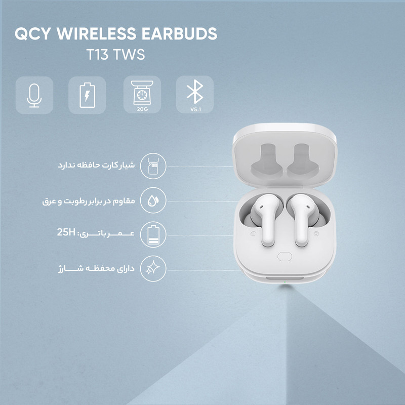 هدفون بلوتوثی کیو سی وای مدل T13 TWS اورجینال با گارانتی ۱۲ ماهه