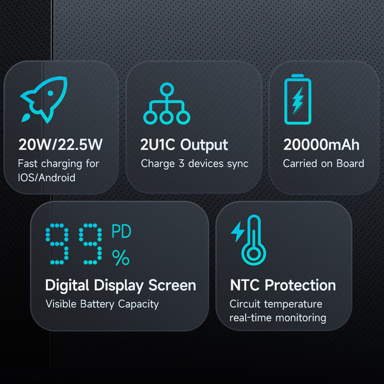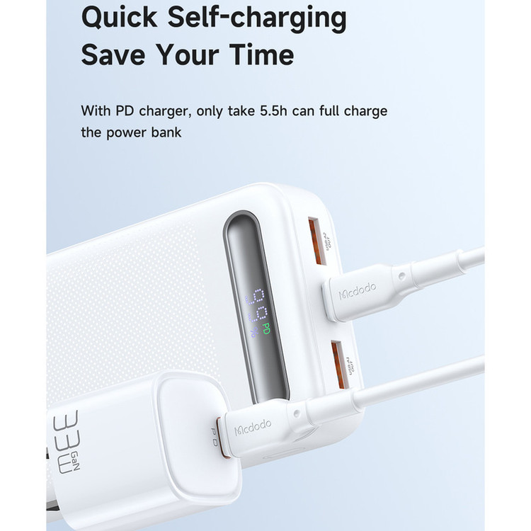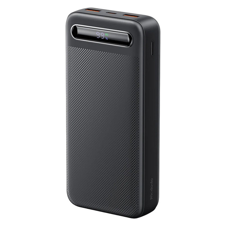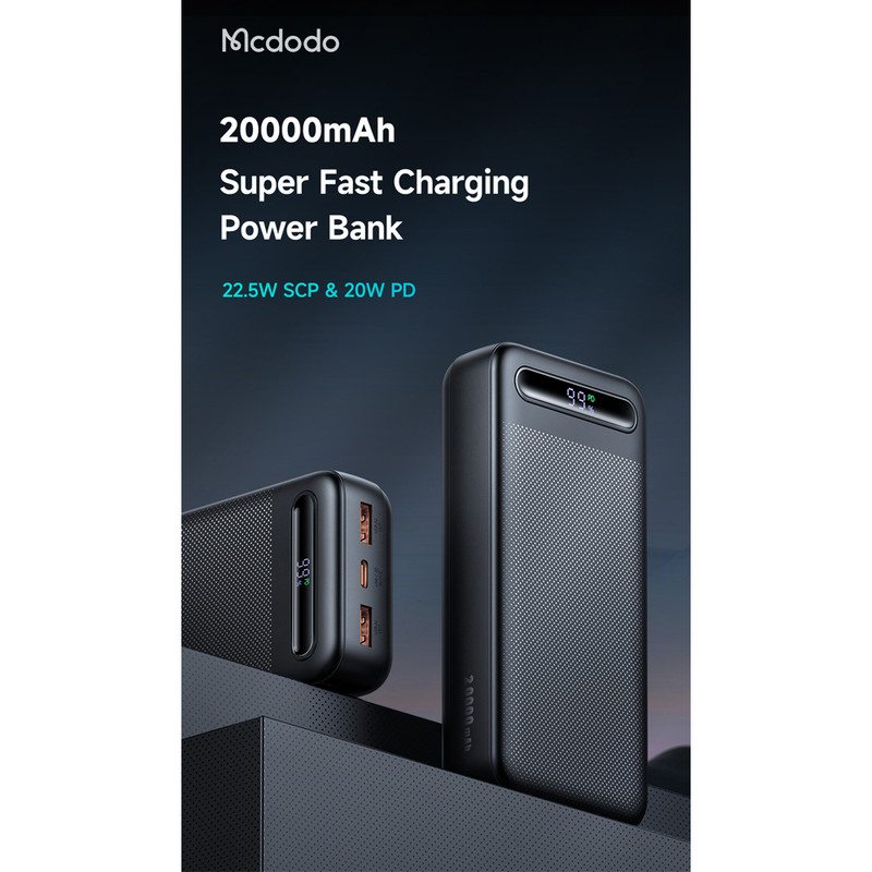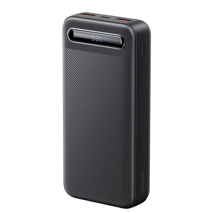 پاوربانک مک دودو 22.5W مدل MC-389 ظرفیت 20000 میلی آمپر ساعت با توان 22.5 وات دارای قابلیت فست شارژ آیفون و اندرویدی است و امکان شارژ 3 دستگاه همزمان را دارد.دارای 3 خروجی که 2 پورت USB و یک پورت تایپ سی که هم امکان شارژ خود پاوربانک را دارد و هم شارژ موبایل و تبلت.این پاوربانک از پروتکل های شارژ سریع PD/QC/SCP/FCP/AFC/VOOC/Apple را دارد و با انواع برندها سازگار است.زمان شارژ این پاوربانک با شارژر 25/33W تایپ سی PD و کابل تایپ سی توان بالا حدود 5.5 ساعت خواهد بود.طراحی بسیار شیک و مینیمال و لاکچری از ویژگی های این پاوربانک است.انتقال حرارت بسیار عالی و عدم تجمع حرارت نیز از خصوصیات MC-389 است.این پاوربانک با رنگهای سفید،سرمه ای و مشکی عرضه شده که با کدهای MC-3890/MC-3891/MC-3892 تفکیک می گردند.پاوربانک داراي تراشهای هوشمندی است که با 9 قابلیت محافظتی ، محافظت کامل از دستگاه در برابر اتصال کوتاه ، نوسانات آمپر و ولتاژ و نوسان حرارت بعهده داشته و میزان جریان و ولتاژ لازم برای هر دستگاه را بصورت اتومات و سريع تشخيص میدهد.دارای صفحه دیجیتال نشانگر درصد شارژ پاوربانک است.