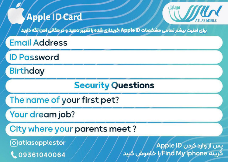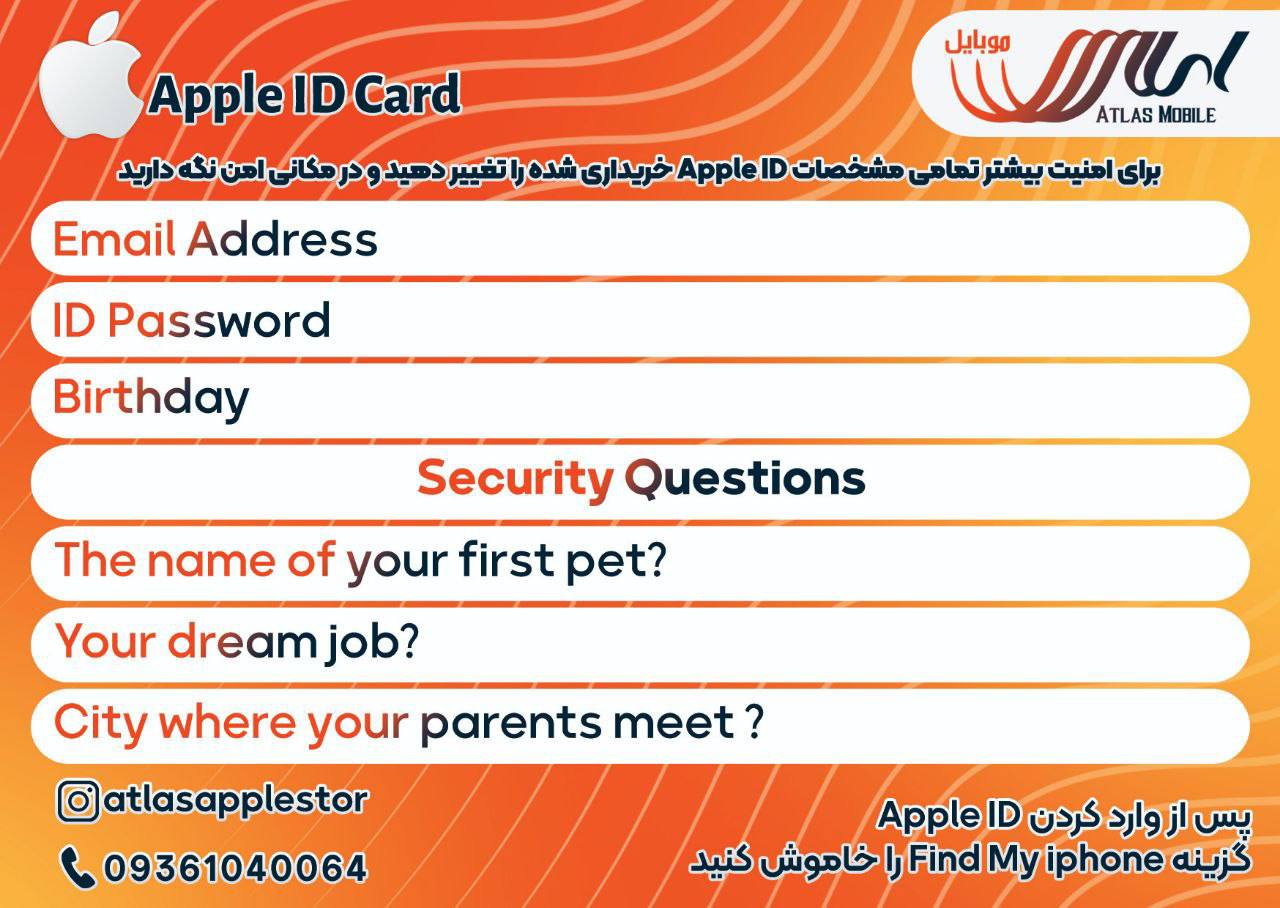 سایر مشخصات: ✅اپل آیدی با ریجن درخواستی شما✅دارای گارانتی یکماه در صورت نات اکتیو شدن،✅بعد از پرداخت اطلاعات خود را در واتساپ یا تلگرام که در سایت هست بفرستین✅